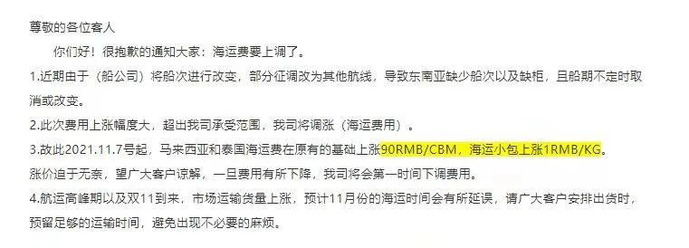 Due to the shortage of ships, all freight forwarders announced emergency price increases, with an average increase of 100 RMB/CBM. Previously, the seller's cost has nearly doubled due to the increase in the price of raw materials. The impact of this new round of logistics price increases on sellers in Southeast Asia is self-evident.