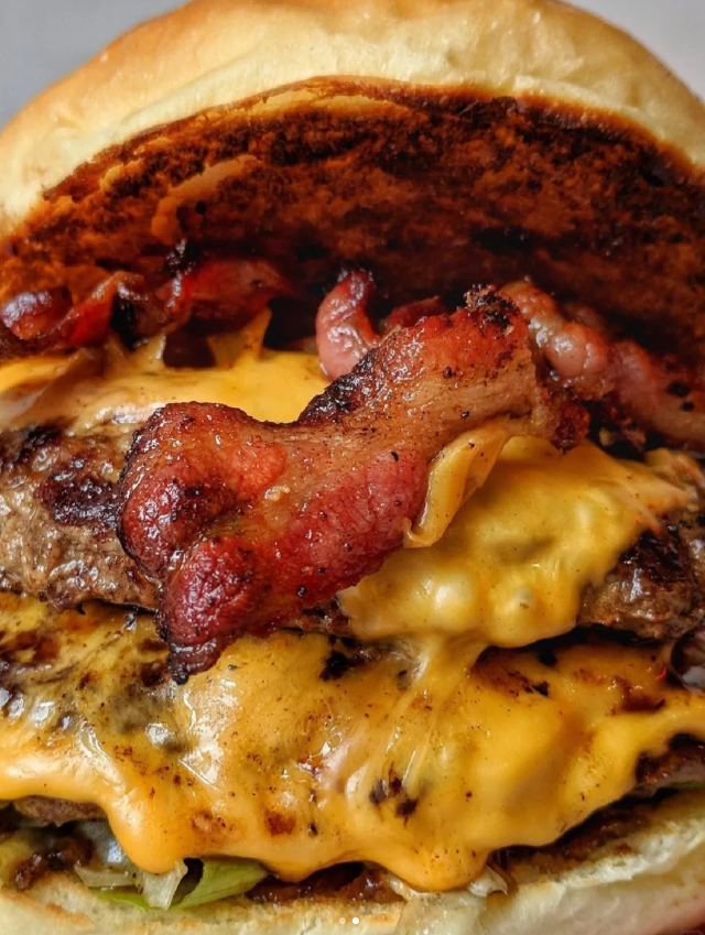 Calling all peanut butter lovers, this bacon peanut butter burger is something I could literally eat for the rest of my life! Put extra sliced bacon and sauce for visual effect, just do it properly in practice. For a more aesthetically pleasing look add some greens like lettuce leaves to look a little more coordinated.