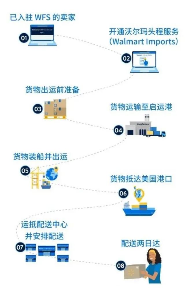 Walmart said that under normal market conditions, it is estimated that it usually takes 27-38 days from the time the goods are ready to be shipped to the time the goods arrive in the United States for sale. This estimate includes 14 days of advance booking, 19 days of port-to-port transportation, 5 days at the terminal, 2 days of warehouse unpacking, and finally 5 days of transfer to WFS's shipping warehouse.