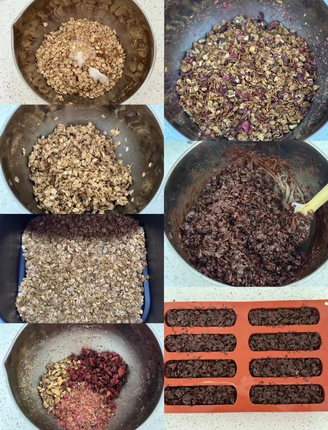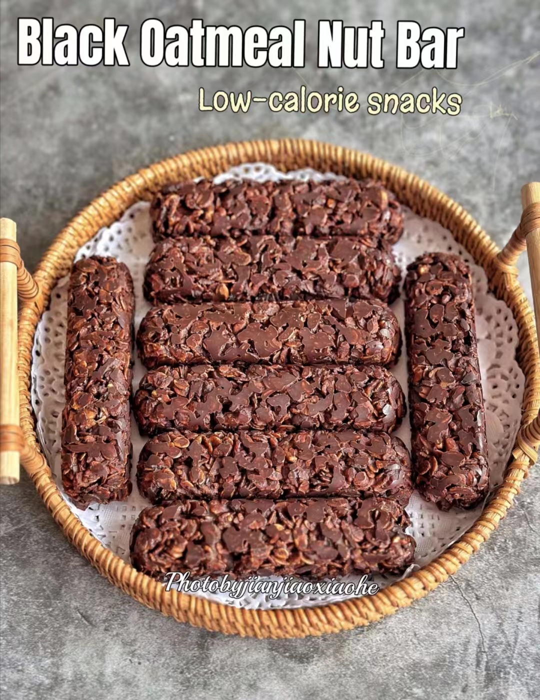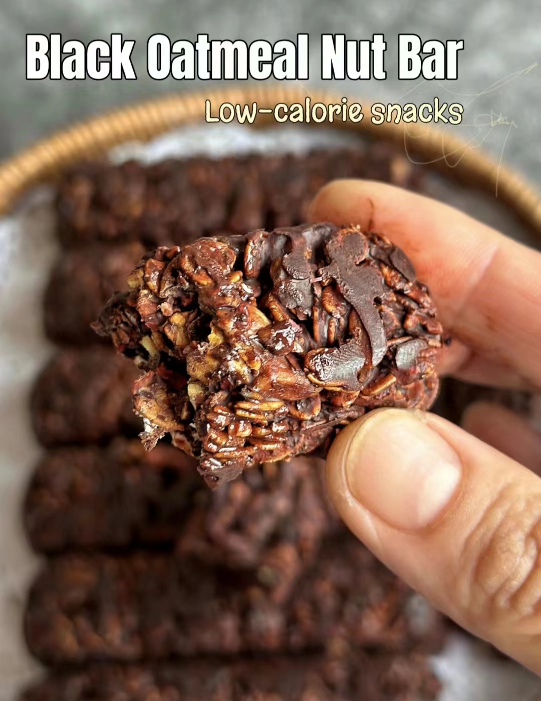 Homemade black oatmeal nut bar, black chocolate is mellow and rich. After the workout eat a piece of super gluttony, super satiety, you can add oatmeal and nuts in it.