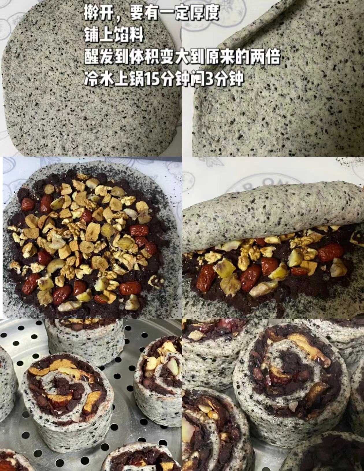 Today we are recommending you a black sesame jujube walnut roll that will fill you with blood energy, it makes you feel all warm and fuzzy when you see it, it's so comforting to have one for breakfast! Easy to learn, go and make it up!