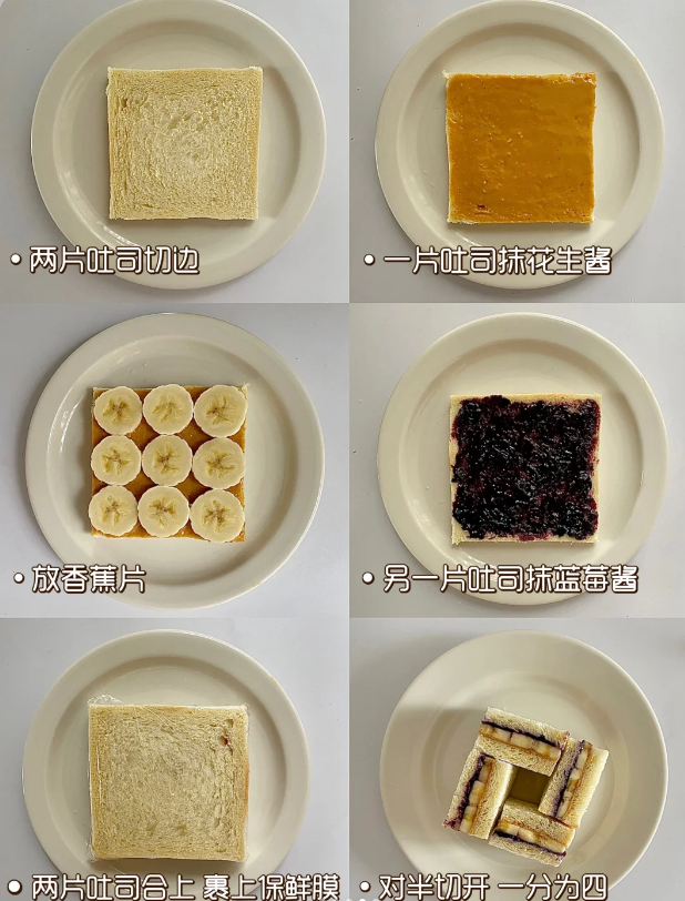Today I'm going to introduce you to a classic peanut butter sandwich from the movies - Blueberry Peanut Butter Banana Sandwich, which has a first class flavor and is delicious and easy to make! Learn it together!