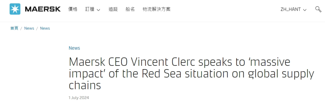 The news also shows that shipping giant Maersk said on July 1 that the next few months will be challenging for shipping companies and businesses because the disruption of container transportation through the Red Sea will continue until the third quarter of this year.