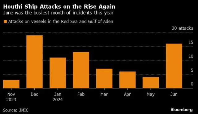 According to Cailianshe, statistics show that the Yemeni Houthi armed forces launched the largest number of attacks on merchant ships in the Red Sea and Gulf of Aden in June so far in 2024, which clearly proves once again that the threats facing the global shipping market may be difficult to resolve quickly.
