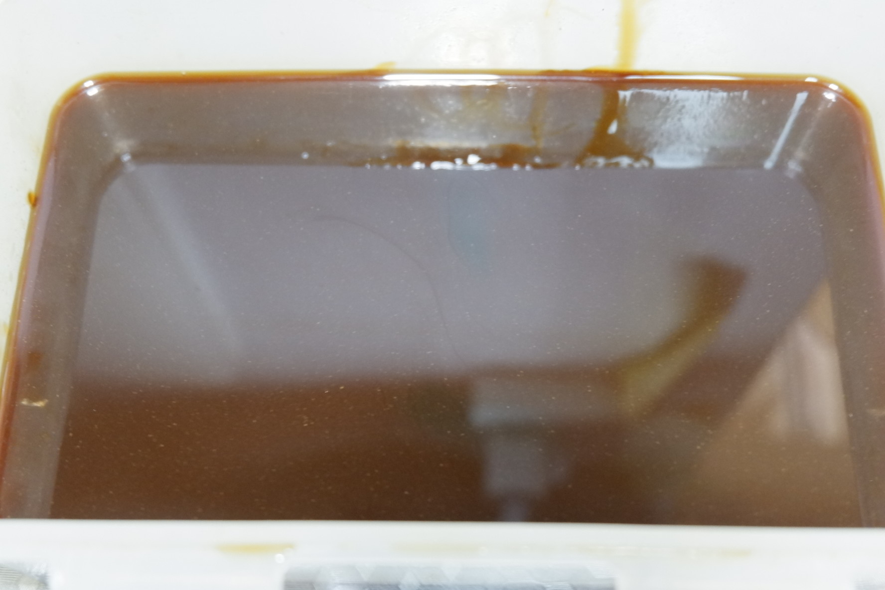 10.Apply more sesame oil in the sealed box, pour the gelatin cake into it, lay it out evenly, and flatten it.
