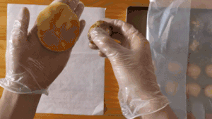 11.Place the filling in the center of the crust, then flip the crust to the top, pressing down as you rotate. Turn it back over and close it up with the jaws of the tiger until the crust completely encloses the filling. Finally, round it slightly with your hands and place it on oiled paper or plastic wrap to prevent the bottom from sticking to the table and breaking the skin.