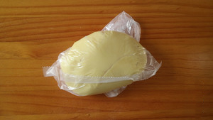 3.Add the all-purpose flour and mix with a spatula, then knead thoroughly with your hands. Put the dough in a plastic bag and seal for 1 hour.