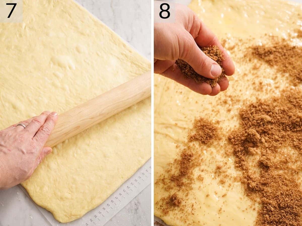 8. Mix the cinnamon and sugar together and sprinkle over the dough.