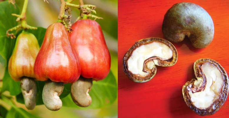 Everyone knows about cashew nuts, but do you know about cashew apples? The image below shows what a wild cashew looks like growing under the shell of a fleshy pear-shaped "apple" fruit. Its bright appearance is designed to attract animals to pick and eat it to protect the kidney-shaped seeds underneath. Cashew apples are the edible part of cashew nuts, soft, juicy, nutritious, and rich in a variety of B vitamins and vitamin C. Where cashews are grown, cashew apples are sold as fruit.