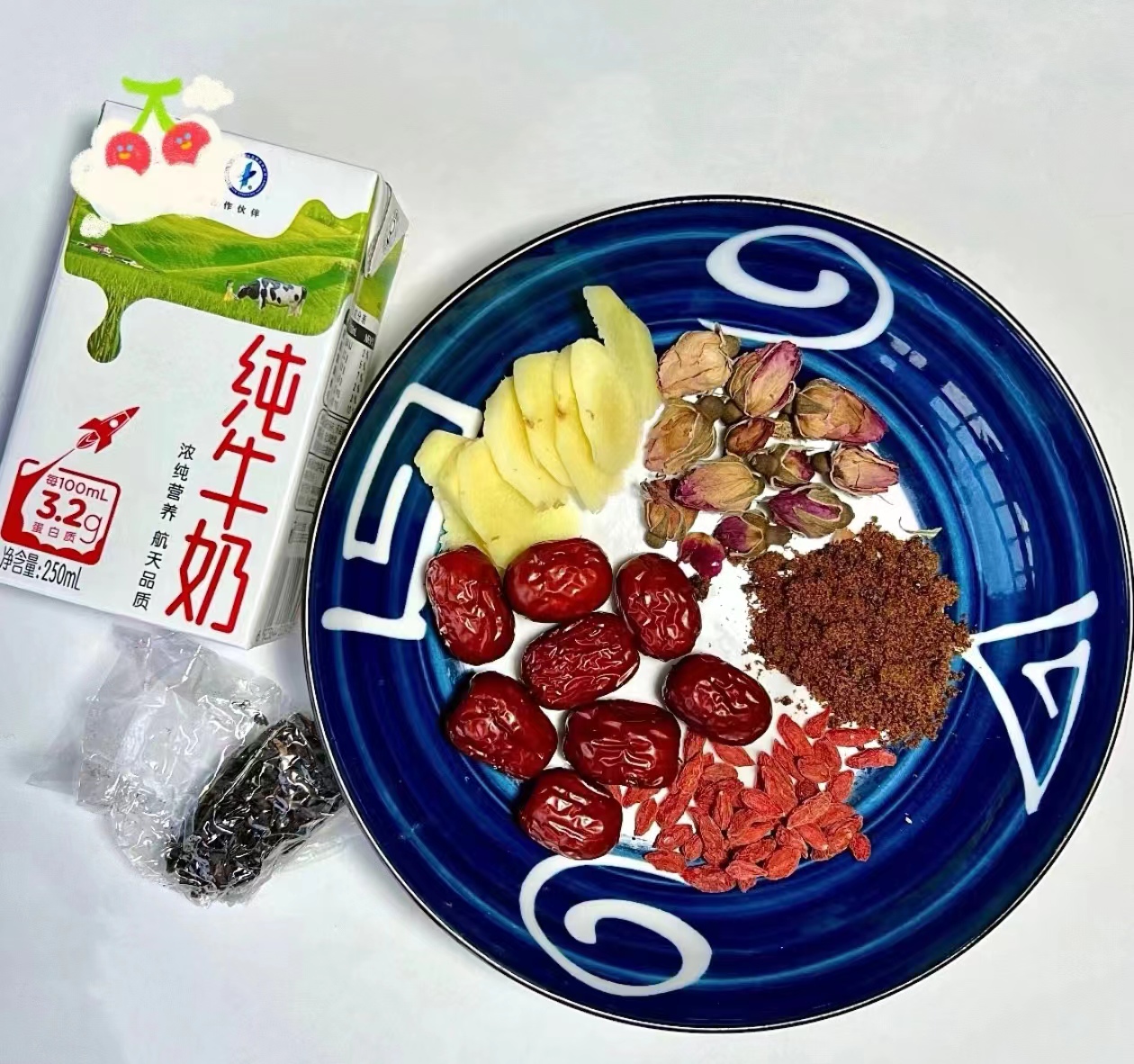 2.Adding the ginger slices, jujube, dried rose, brown sugar, and goji berry and cooking for 5 minutes, once you turn off the heat you can pick out the ginger slices.
