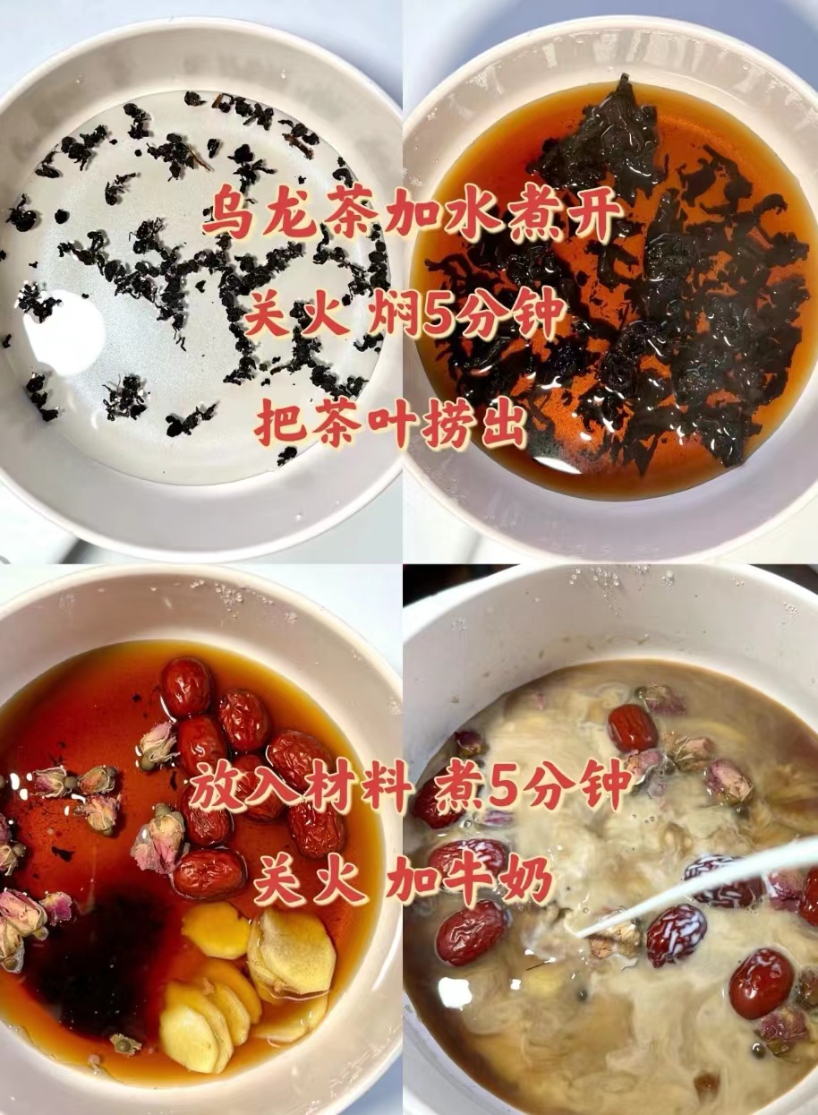 1.Boiling the oolong tea with water and turn off the heat, let it simmer for 5 minutes and then fish out the tea leaves.