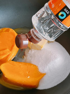2. Passion fruit puree and mango puree were made by myself, the seeds of passion fruit are removed, the mango is mashed with a wall breaking machine, and then add all the things in the first part. If there is no trehalose, you can use white sugar, properly reduce the amount of white sugar, the sweetness of trehalose is equivalent to about 45% of sucrose (like a little sweet can add 100 g) and then small and medium fire boil.