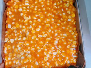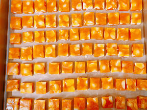 8. Just the amount of a gold plate, pour it in and then shape it, cool it at room temperature for about two hours, and then put it in the refrigerator to cool it for about two hours before you can take it out and cut it.