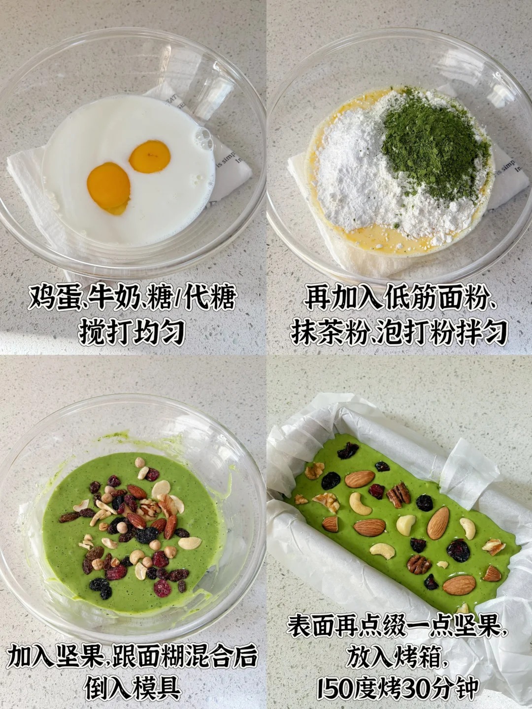Today I’m sharing with you a colorful matcha nut cake. It’s super easy to make, with 0 sugar and 0 oil. It becomes more delicious the more you eat it and gives you a strong sense of fullness. Come and learn from me.