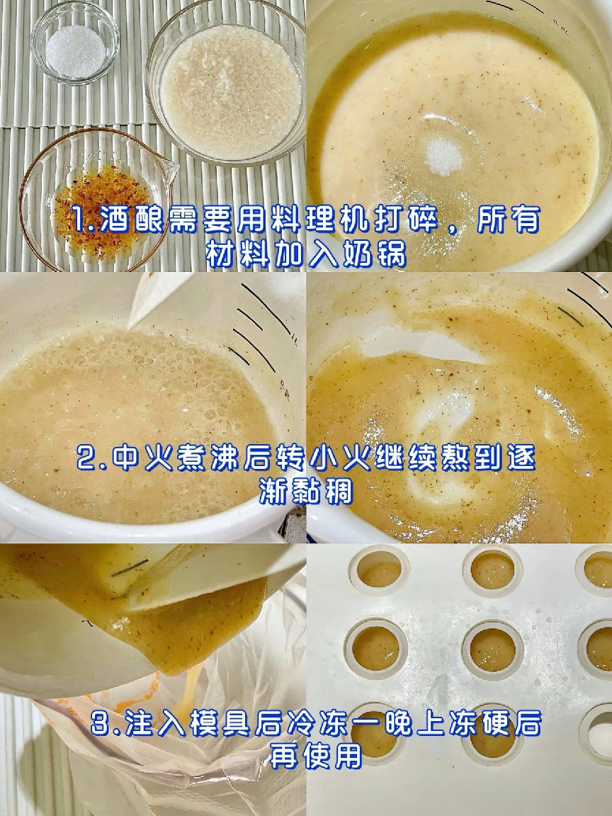 2. Pour into ice cube molds and freeze (each portion can be 5–10g). Alternatively, use the unfrozen filling directly.