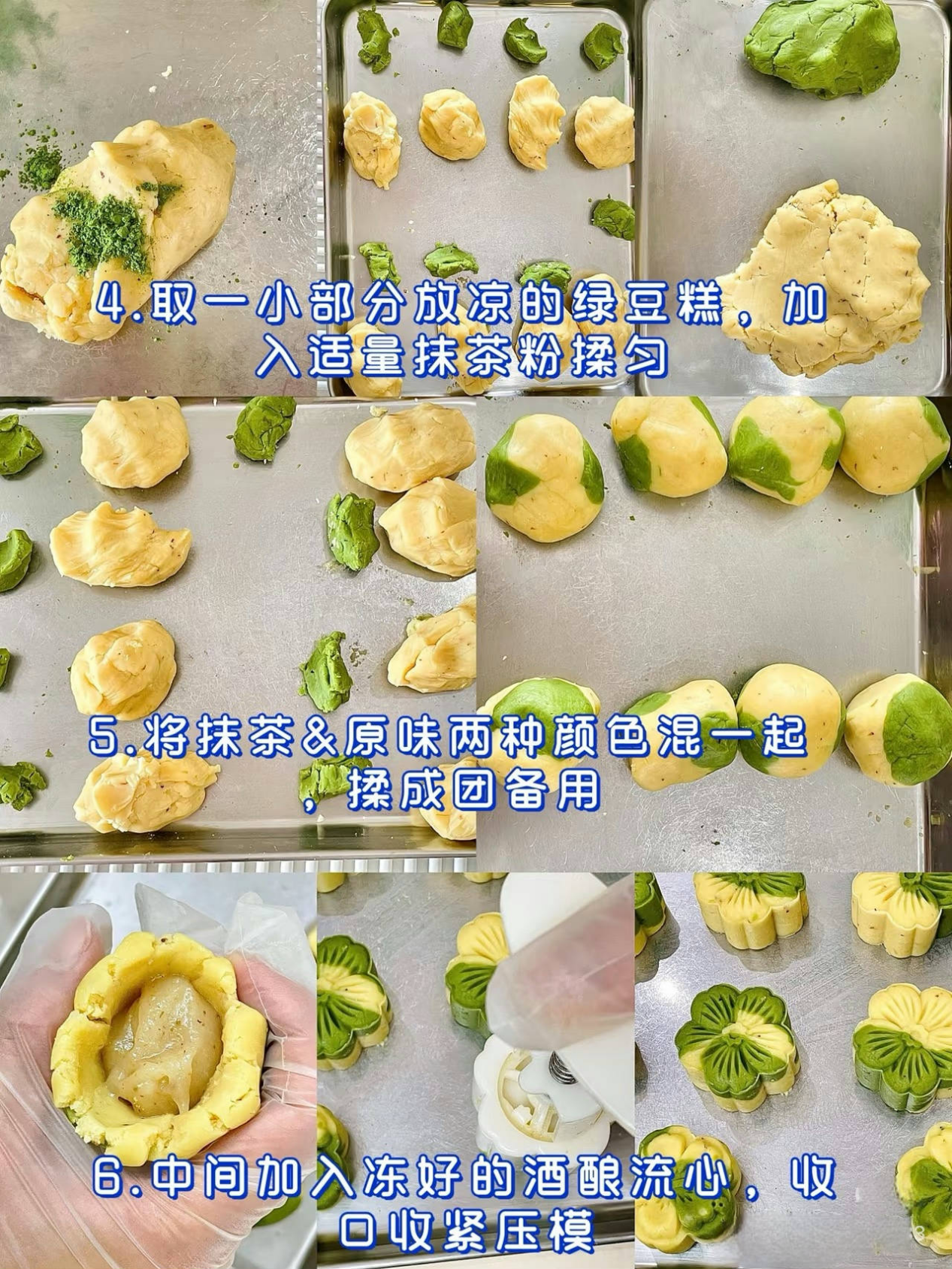 6. For color variation, mix a small portion of the cooled dough with matcha powder.