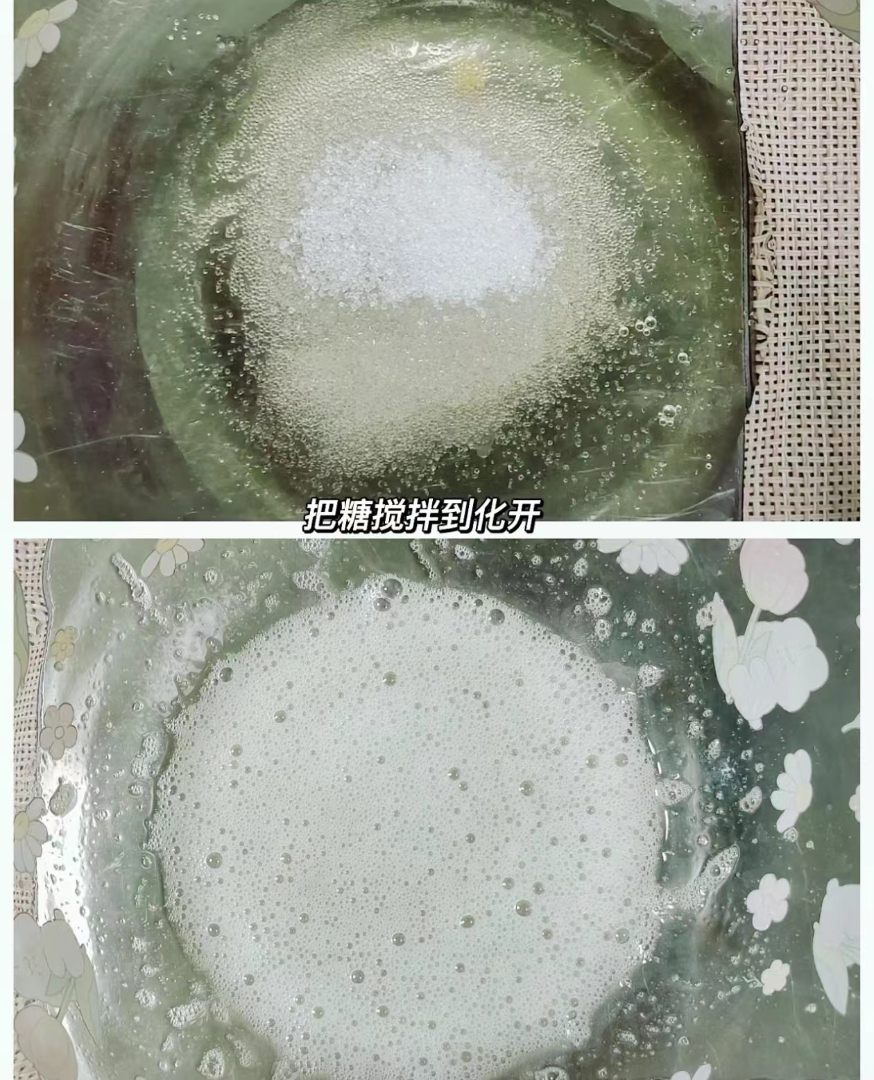 Whisking one egg white with 10g of honey.