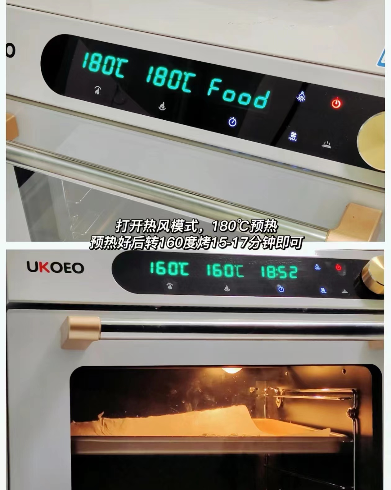 Setting hot air mode and preheating at 180 ℃. Once preheated turn to 160 ℃. and bake for 15-17 minutes.