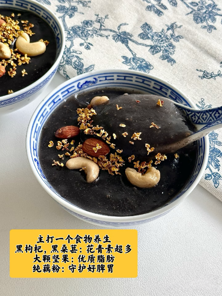 Preparation: Grind the 8 kinds of black ingredients into powder using a high-speed blender. Store in an airtight jar. For breakfast or before bed, simply pour hot water and stir.