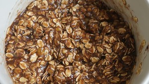 Guanghua creamy peanut butter 60g, instant oatmeal 150g, 2 ripe bananas, 1 egg, 10g cocoa powder