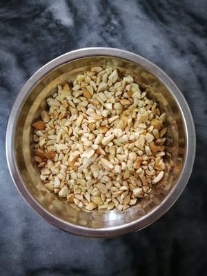 Step 1. Roasted the peanuts in advance, go to the clothes, and roll them with a rolling pin. If you like to eat grainy, don't roll them too much. On the contrary, you can roll it up if you don't like it.