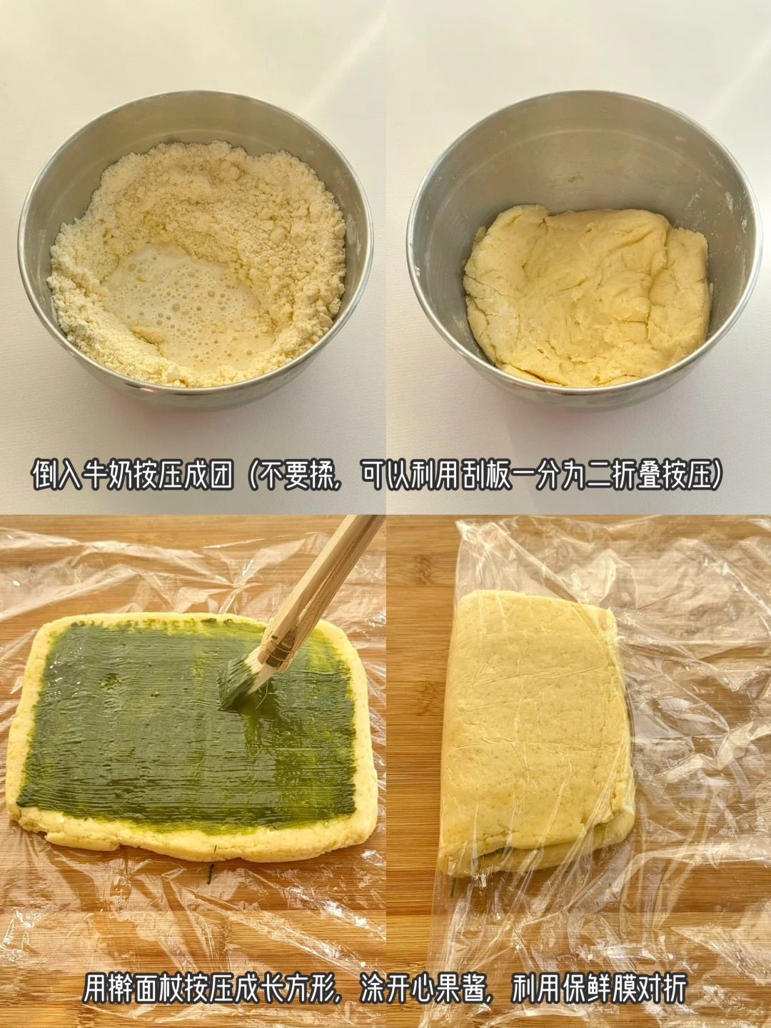 Ingredients: 200g low-gluten flour, 1g salt, 25g sugar, 80g butter, 1 egg yolk, 6g baking powder, 70g milk, pistachio paste as needed