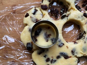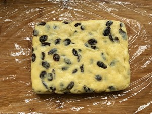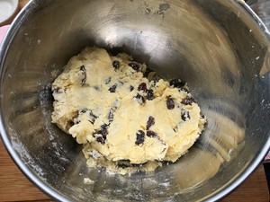 7. Add the raisins, mix well and knead into a ball.