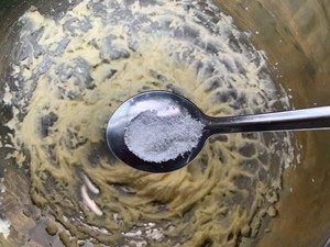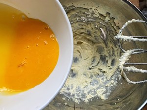 4. Add the egg yolk in batches and stir well, adding the egg yolk once until it is fully absorbed before adding the next time.