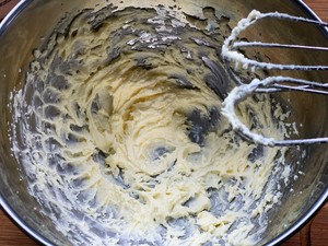 2. Then add the fine sugar and beat with an electric egg beater until the butter turns white.
