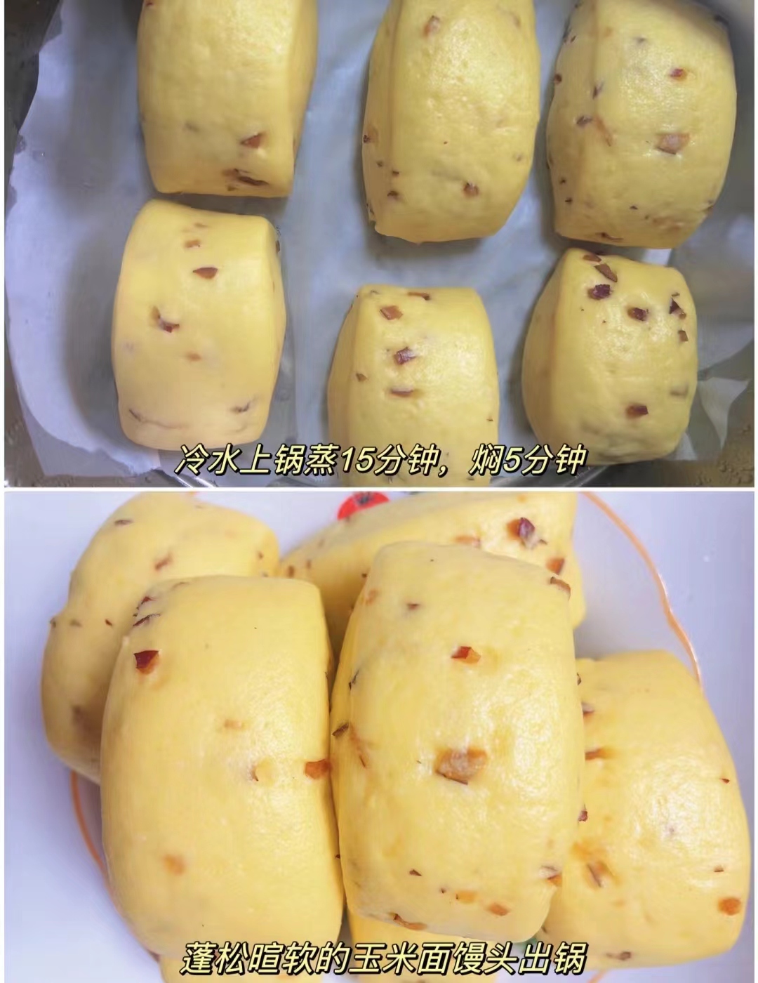 Corn flour is rich in fiber, which can promote digestion and regulate the spleen and stomach. The steamed bread is soft and fluffy, and the sweetness of the red dates makes them really delicious! Let's follow the steps below to make them together!