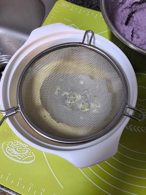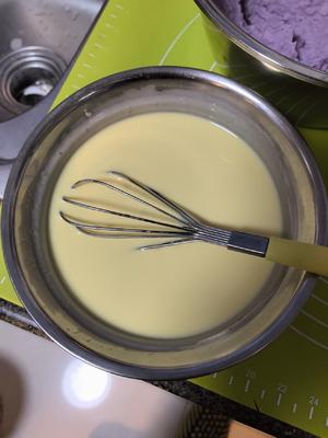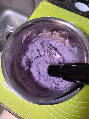 1. Stir the steamed taro, purple sweet potato powder, sugar powder, condensed milk and cream together and mash them with a wall breaker;