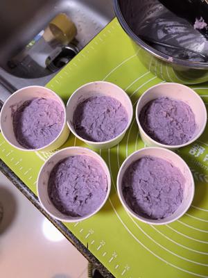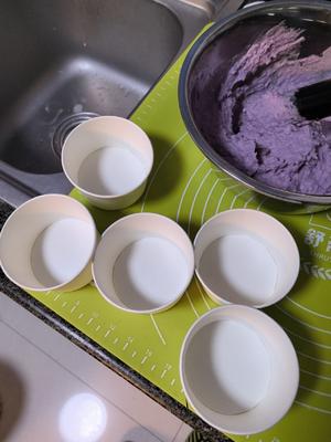 3. Put the taro paste into disposable paper cups, about 80 grams each;