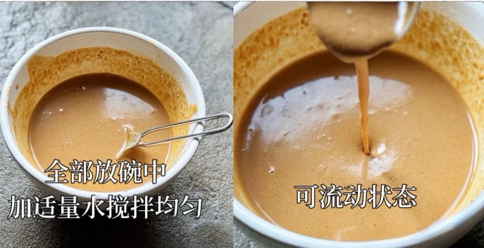 1. Prepare the sauce: Thin the peanut butter with drinking water. Add all other seasonings and mix well. Taste and adjust if needed. The sauce should be pourable but still thick.