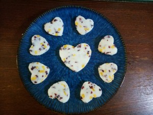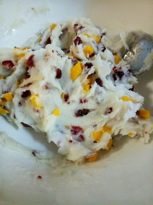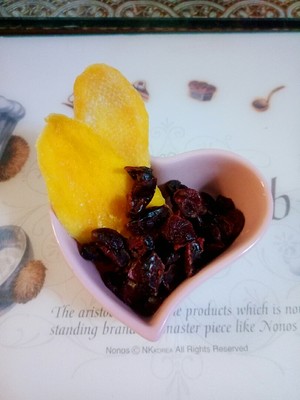 Yam 1 piece, condensed milk 20g, dried cranberries 20 g, dried mango slice 2 pieces