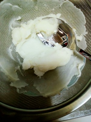 Step 4. The sieved yam puree is velvety on the back of the screen.