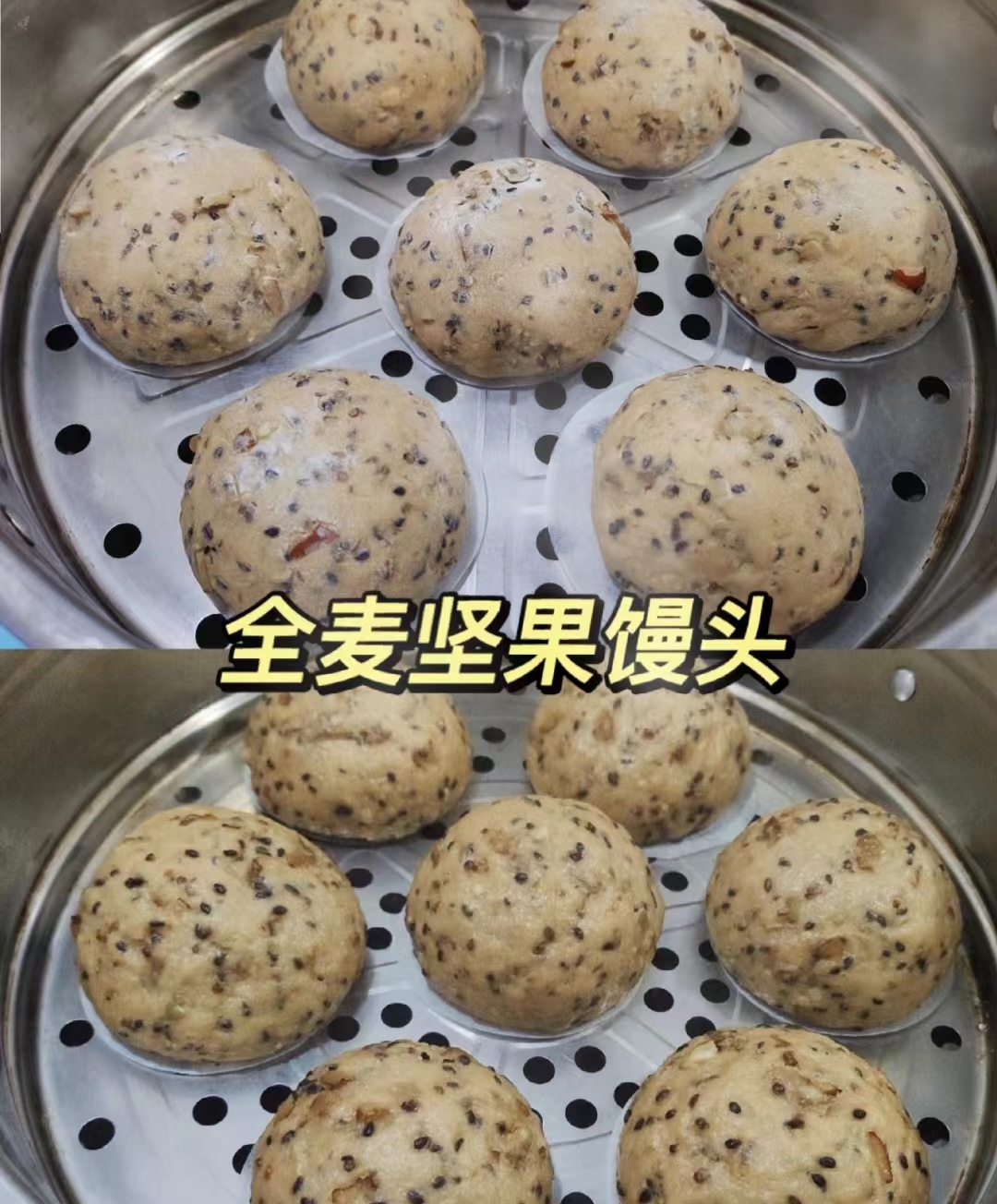 Today we are sharing a wholemeal nut steamed bread that is easy to make at home, with a rich wheat flavour, low calories and a strong sense of satiety, you can put some of the nuts you like to eat.